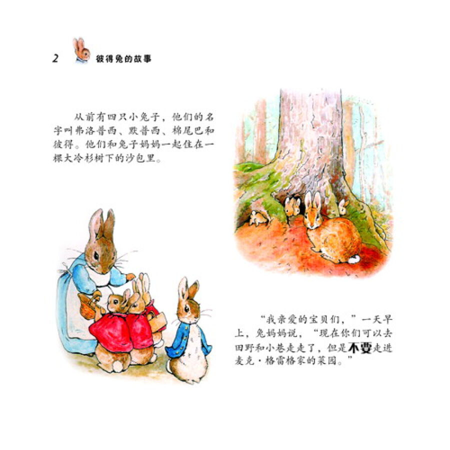 “彼得兔的故事”系列是著名的英国女作家、画家比阿特丽克斯?波特小姐毕生的作品,本系列收录了21个经典的童话故事和2首童谣。故事彼此独立又成体系,自1902年出版以来,受到了全世界小朋友的青睐,已经被译为36种语言。直至今日,顽皮的小兔彼得、不听话妈妈话的小猫汤姆、憨厚善良的小猪布兰德、单纯到有些傻乎乎的母鸭子杰里米、唠唠叨叨的小老鼠太太……仍旧点亮孩子们的童年,每个孩子都值得享受这个干净纯真的彼得兔世界。