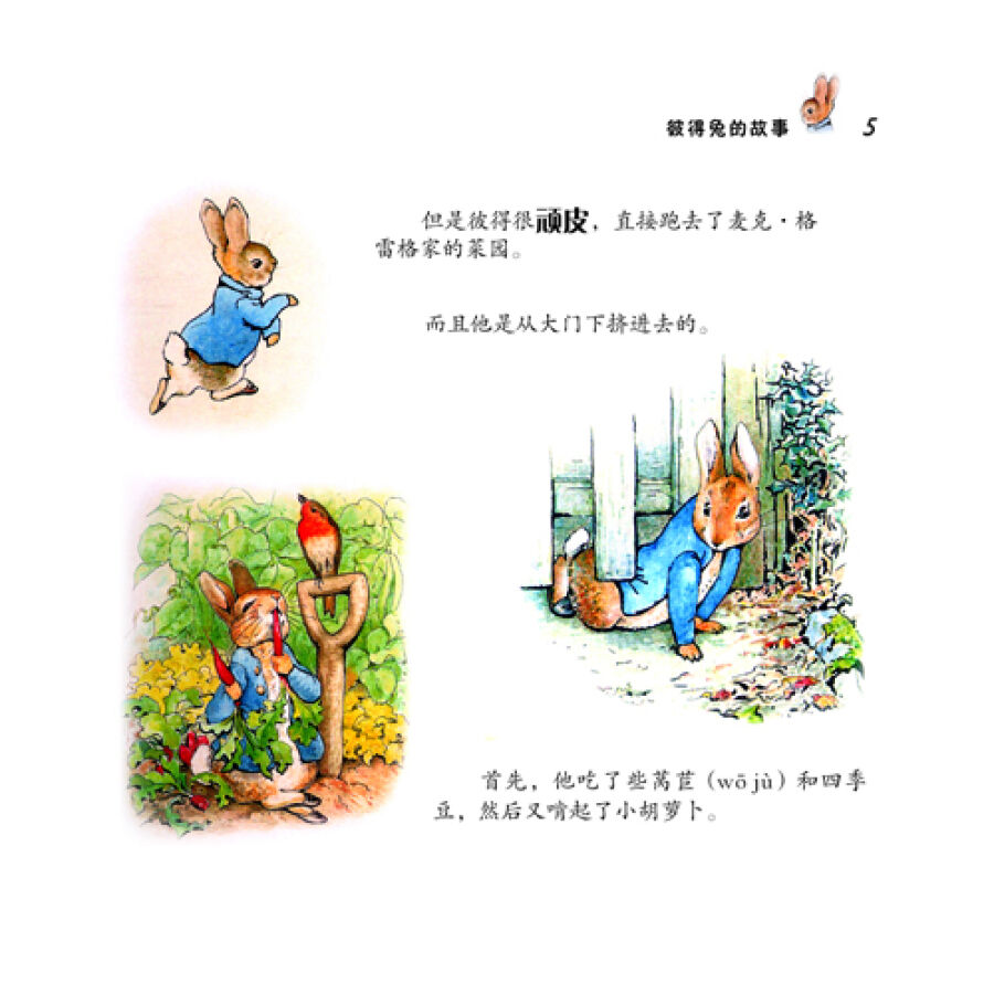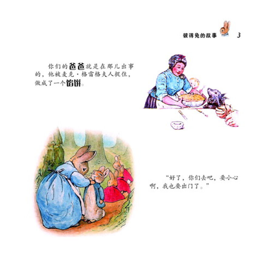 “彼得兔的故事”中只有童趣,只有单纯、善良,以及只有孩子耍的小聪明,而没有一丝成人世界中的尔虞我诈。所以,这是一部家长可以放心讲给孩子听无数遍的故事,您可以与孩子一起沉浸在纯真的孩提世界。