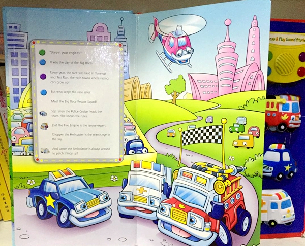 赛车大救援有声故事书,仿真模拟各种交通工具的声音,有赛车,救护车、警车……生动形象!