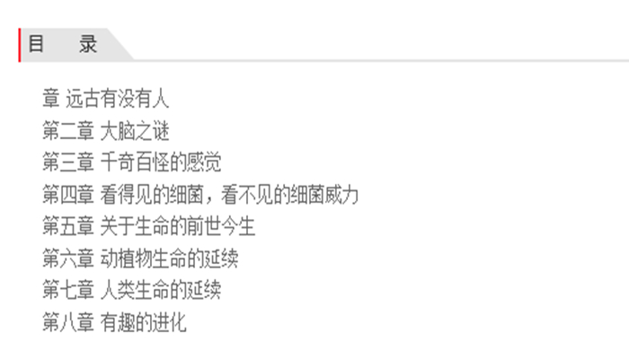 这是一套图文并茂的科普读物,为孩子们介绍了人类生活中方方面面的科学知识。科学是关于发现、发明、创造、实践的学问。科学帮助人类了解物质世界的现象,寻求宇宙和自然的法则,研究自然世界的规律。通过科学的方法,人类逐渐掌握了物理、化学、地质学、生物学等各方面的知识和规律。人类的进步离不开科技的力量。科技不仅仅承载着人类未来和探索宇宙等重大使命,也与我们的日常生活息息相关。本套丛书每个分册系统介绍一两个主题,既增长知识,又启发孩子的创造力和想象力。在兼顾科学理论的同时,务求素材生活化、趣味化,旨在培养孩子的大能力、大视野。从亿万年前的远古时期,到如今的现代世界;从人类、大型动物到不起眼的蜗牛、细菌,生命无处不在,又隐藏着无穷的奥秘。生命究竟从何而来?不同的生命有着怎样不同的特征?《生命奥妙》通过图文并茂的形式,为小读者解读各种生命的谜团,点燃他们对大自然的好奇心和求知欲。