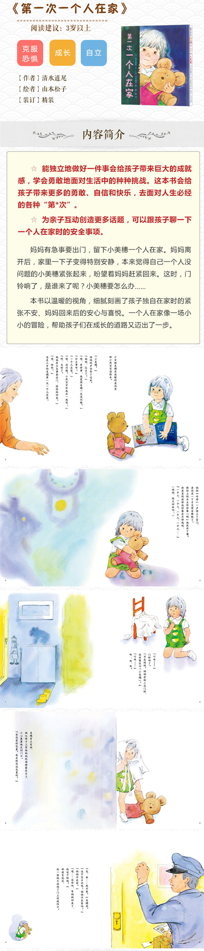 每一个“*次”都是成长路上重要的一步克服恐惧与孤独,积攒力量和勇气,走向自立与坚强。妈妈有急事要出门,留下小美穗一个人在家。妈妈离开后,家里一下子变得特别安静,本来觉得自己一个人没问题的小美穗紧张起来,盼望着妈妈赶紧回来。这时,门铃响了,是谁来了呢?小美穗要怎么办……本书以温暖的视角,细腻刻画了孩子独自在家时的紧张不安、妈妈回来后的安心与喜悦。一个人在家像一场小小的冒险,帮助孩子们在成长的道路又迈出了一步。