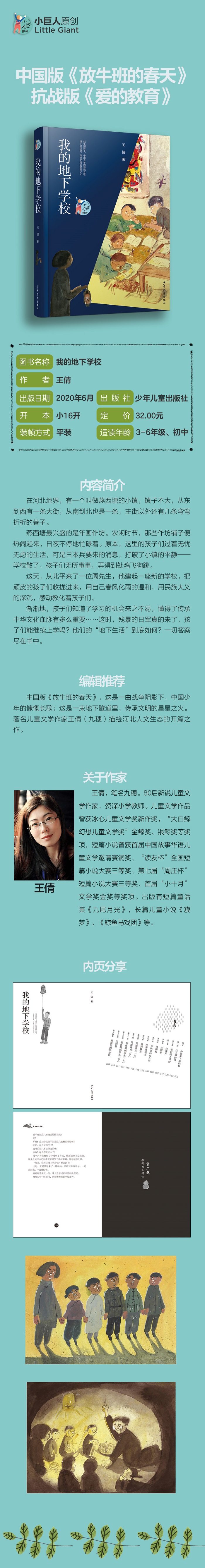 在河北地界,有一个叫做燕西塘的小镇,镇子不大,从东到西有一条大街,从南到北也是一条,主街以外还有几条弯弯折折的巷子。 燕西塘*兴盛的是年画作坊。农闲时节,那些作坊铺子便热闹起来,日夜不停地忙碌着。原本,这里的孩子们过着无忧无虑的生活,可是日本兵要来的消息,打破了小镇的平静——学校散了,孩子们无所事事,弄得到处鸡飞狗跳。 这天,从北平来了一位周先生,他建起一座新的学校,把顽皮的孩子们收拢进来,用自己春风化雨的温和,用民族大义的深沉,感动教化着孩子们。 渐渐地,孩子们知道了学习的机会来之不易,懂得了传承中华文化血脉有多么重要……这时,残暴的日军真的来了,孩子们能继续上学吗?他们的“地下生活”到底如何?一切答案尽在书中。