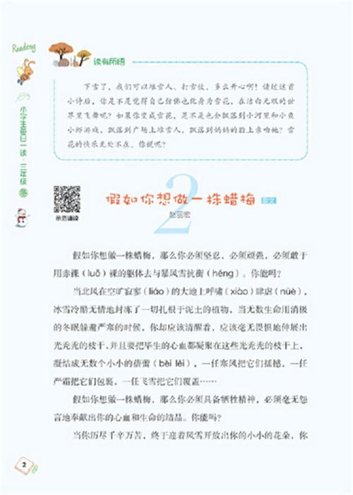 《小学生每日一读》是为小学生量身打造的一套提升语文素养的阅读书,这里有温暖励志的故事,有奇妙动人的童话,有优美的诗歌、散文,让孩子畅游在文学的海洋中,阅读精彩的故事,吟诵优美的歌谣,既能拓展孩子的阅读视野,提升阅读品味,塑造优秀品格,又能提高孩子的阅读能力、理解能力、写作能力。同时,优美的选文伴读,让无声的文字变成有声的朗读,感受母语之美,汲取成长的力量。 本系列图书按年级编写,每个年级四册书(春、夏、秋、冬),每册书设置12周,60篇文章。图书依据阅读要求编写,精选内容,以小学生自主阅读为主,满足课外阅读的需求,并通过“每日一读”的阅读理念,从小养成阅读、诵读的好习惯。 在线试读