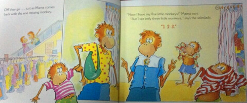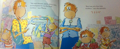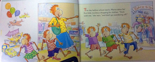 It's the day before school starts, and Mama takes her fivelittle monkeys shopping for