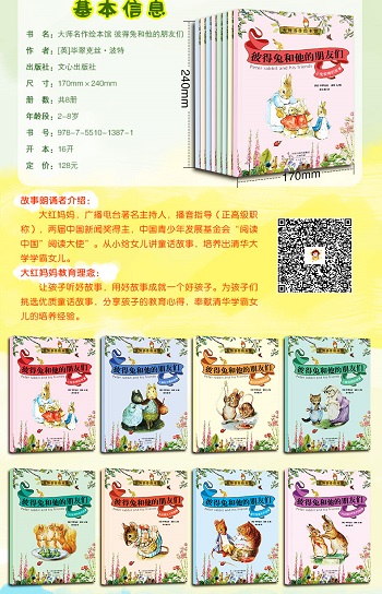 “彼得兔故事系列”是19-20世纪英国绘本大师毕翠克丝·波特的代表作,今天,全世界的人知道她的名字也是因为她创作的这套书。毕翠克丝·波特笔下的小动物们每一个都有自己的个性——淘气而又胆小怕事的小兔彼得,尖酸贪婪的老鼠大胡子塞缪尔,不谙世事而又颇有主张的水鸭杰迈玛,大智若愚、心胸开阔的小猪布兰德……每一个形象都深入人心。自1902年首次出版以来,“彼得兔故事系列”便赢得了全世界孩子的心,至今已被翻译成三十六种语言,销售量以亿册计,英语国家的孩子们几乎人手一册。