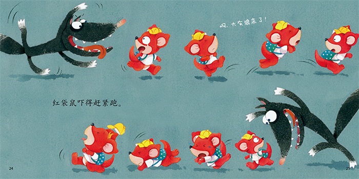 红袋鼠对大黑鼠从一开始的抗拒,到逐渐接受,到最后手拉手一起回家,整个过程都充满浓浓的爱,让宝宝学会发现生活中的小惊喜,学会交朋友。