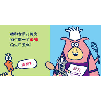马上要到奶牛的生日了! 猪和老鼠要为奶牛做一个zui棒的生日蛋糕! 鸭子却一直希望能把萝卜在蛋糕中派上用场, 尽管这并不可行…… 奶牛来啦,这是他“过得zui好的生日”! 可他看到的不是蛋糕,是鸭子手中的萝卜! 猪和老鼠会怎么办? 鸭子和奶牛又说了什么悄悄话呢?
