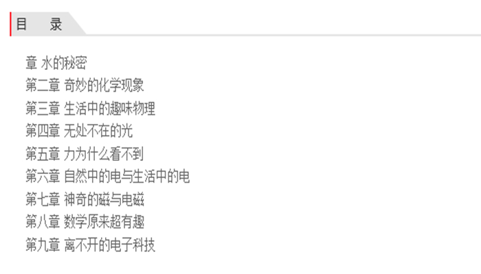 这是一套图文并茂的科普读物,为孩子们介绍了人类生活中方方面面的科学知识。科学是关于发现、发明、创造、实践的学问。科学帮助人类了解物质世界的现象,寻求宇宙和自然的法则,研究自然世界的规律。通过科学的方法,人类逐渐掌握了物理、化学、地质学、生物学等各方面的知识和规律。人类的进步离不开科技的力量。科技不仅仅承载着人类未来和探索宇宙等重大使命,也与我们的日常生活息息相关。本套丛书每个分册系统介绍一两个主题,既增长知识,又启发孩子的创造力和想象力。在兼顾科学理论的同时,务求素材生活化、趣味化,旨在培养孩子的大能力、大视野。科学的发展让人类逐渐解开了自然界的各个谜团,创造出我们现在更加美好的世界。《魅力科学》通过生动有趣的科普知识,带领小读者探索科学的奥秘,提高他们的科学素养,为今后的深入学习打下基础。