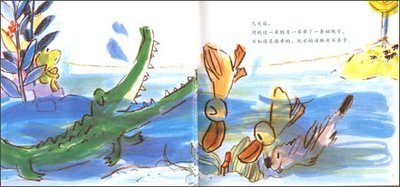 鳄鱼兴致勃勃地来邀他游泳,小青摇摇头,表示没带“蛙镜”。接着鸭子也来邀约,小青还是一再推托,解释没带“泳衣”!