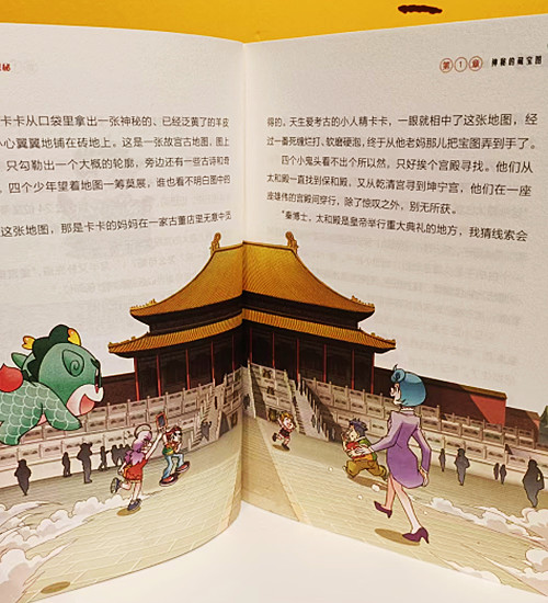 《大中华寻宝记知识小说》是畅销品牌“大中华寻宝记”的延伸产品。它以“冒险文学+寻宝知识+漫画彩图”的形态呈现,融合了寻宝、冒险、悬疑、幽默等精彩元素,让孩子们在更酣畅淋漓的阅读体验中了解华夏人文地理,探索中华文化精华。机敏睿智的寻宝少年米克、月半、果果和卡卡,与学识渊博的秦博士、英勇神武的千年神兽顶呱呱一起,在意外频出、笑料不断的旅程中奔赴祖国各地寻宝,书中幽默风趣的文字、跌宕起伏的情节,为孩子们别开生面地展现了中华文化和地理知识,也让孩子们身临其境地领略了一场场纸上寻宝之旅。